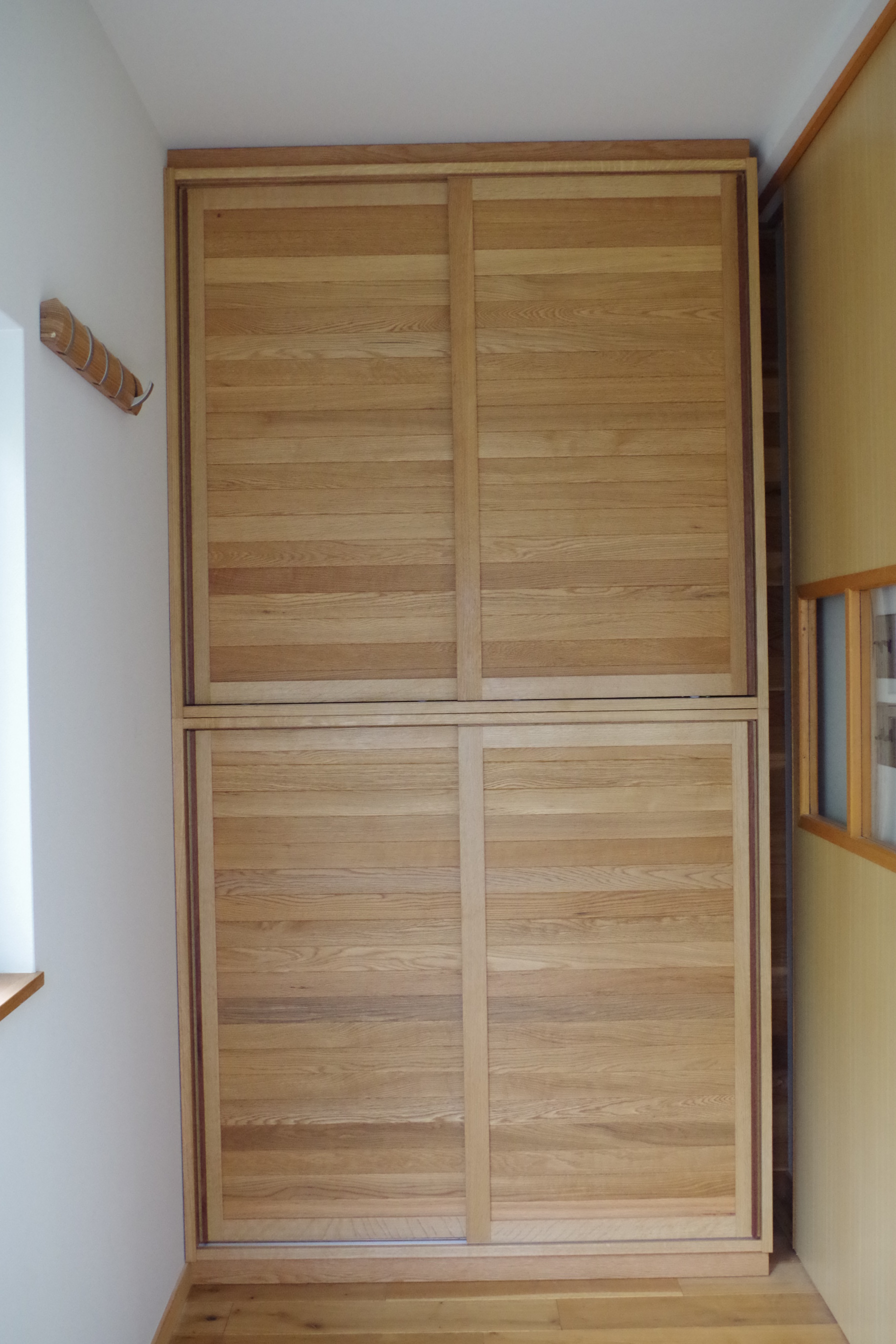 玄関奥の壁は、既製品の収納を設置していましたが、