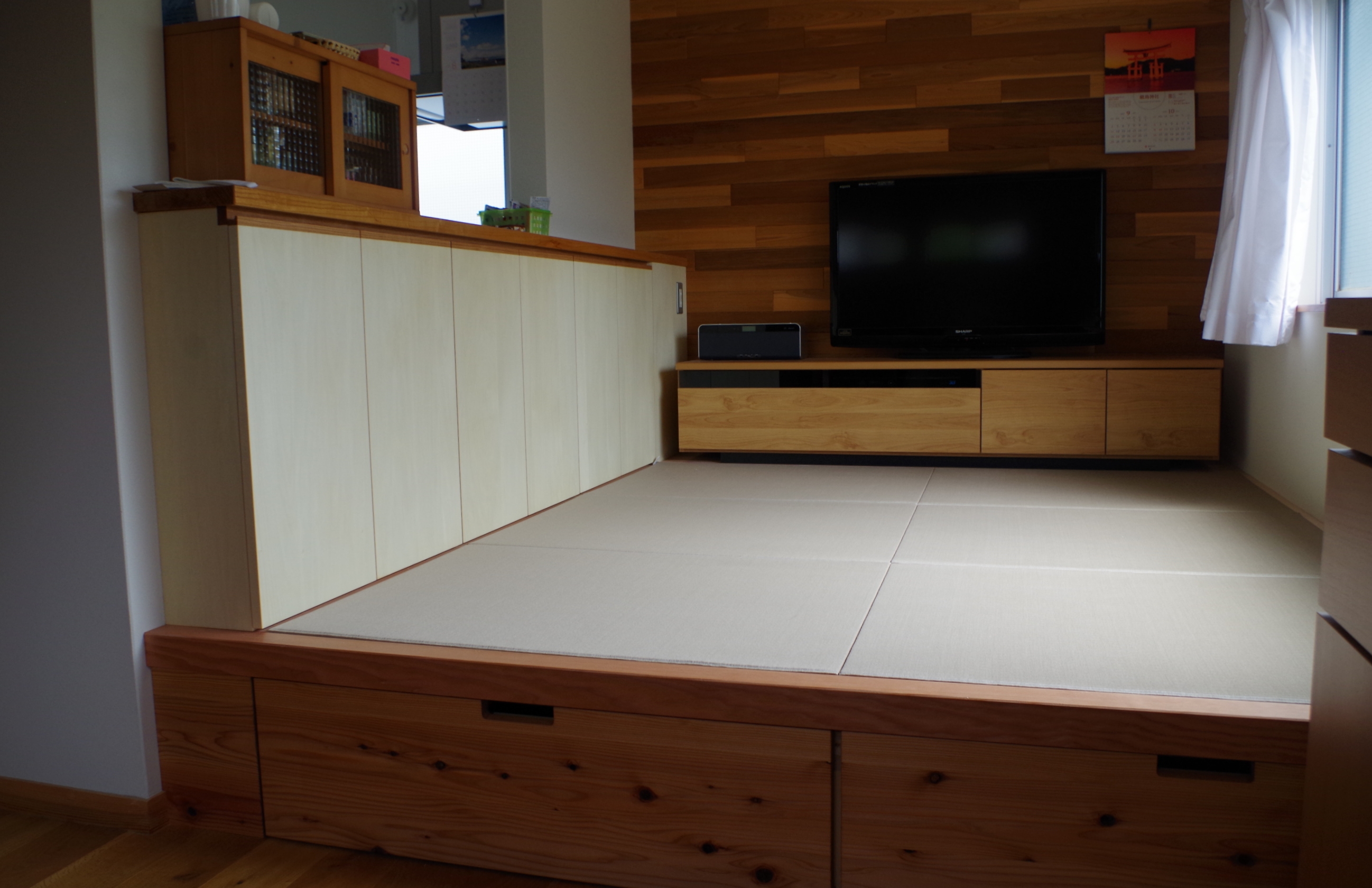 畳の手前は引出し、奥は畳を開けて収納するスペースとしています。